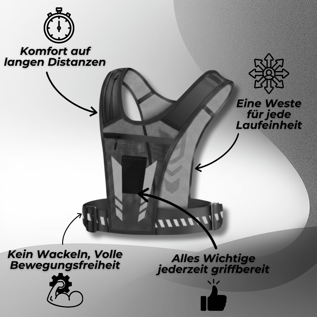 Nein. Die Laufweste wurde so entwickelt, dass sie stabil sitzt und nicht wackelt – auch bei hohem Tempo oder auf unebenem Gelände.