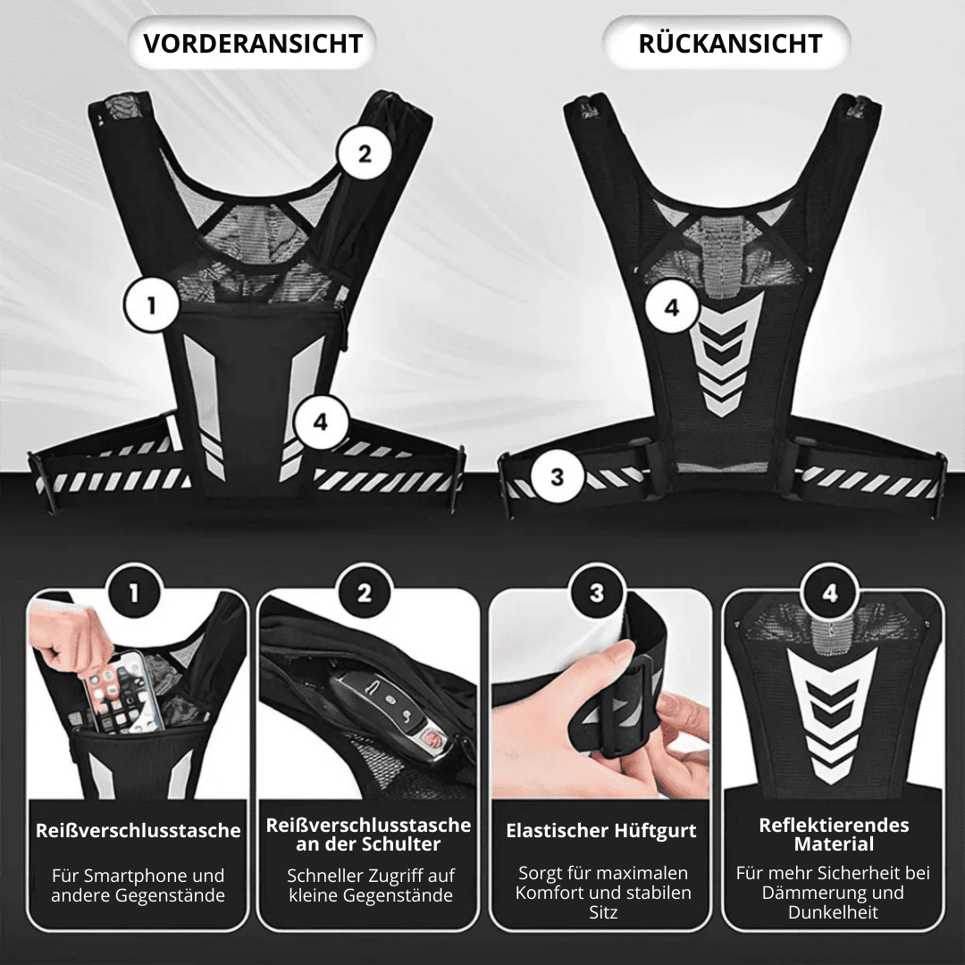 ✨ Ultraleicht & komfortabel | 🎒 Praktische Taschen | 🌙 360°-Sichtbarkeit