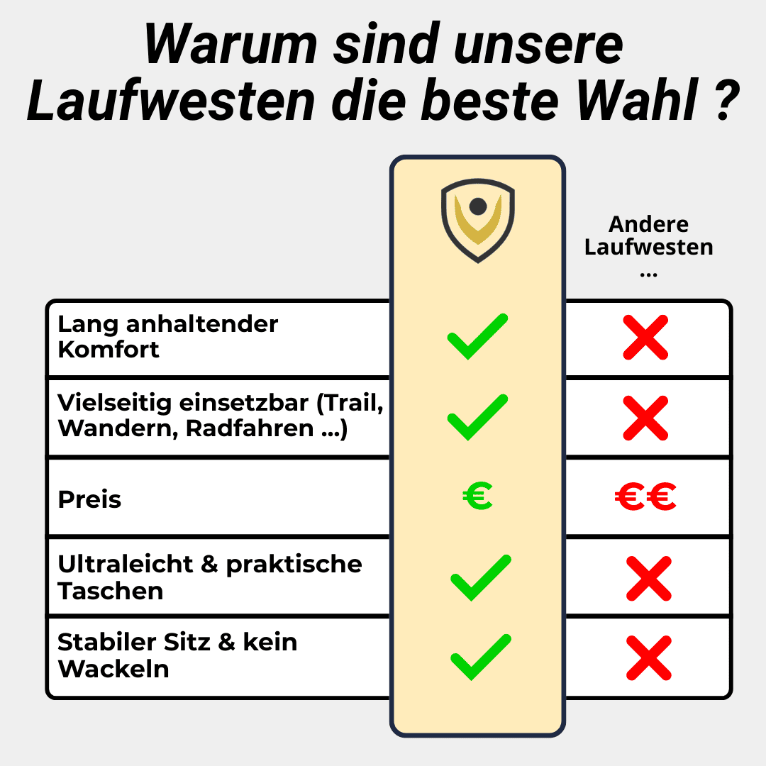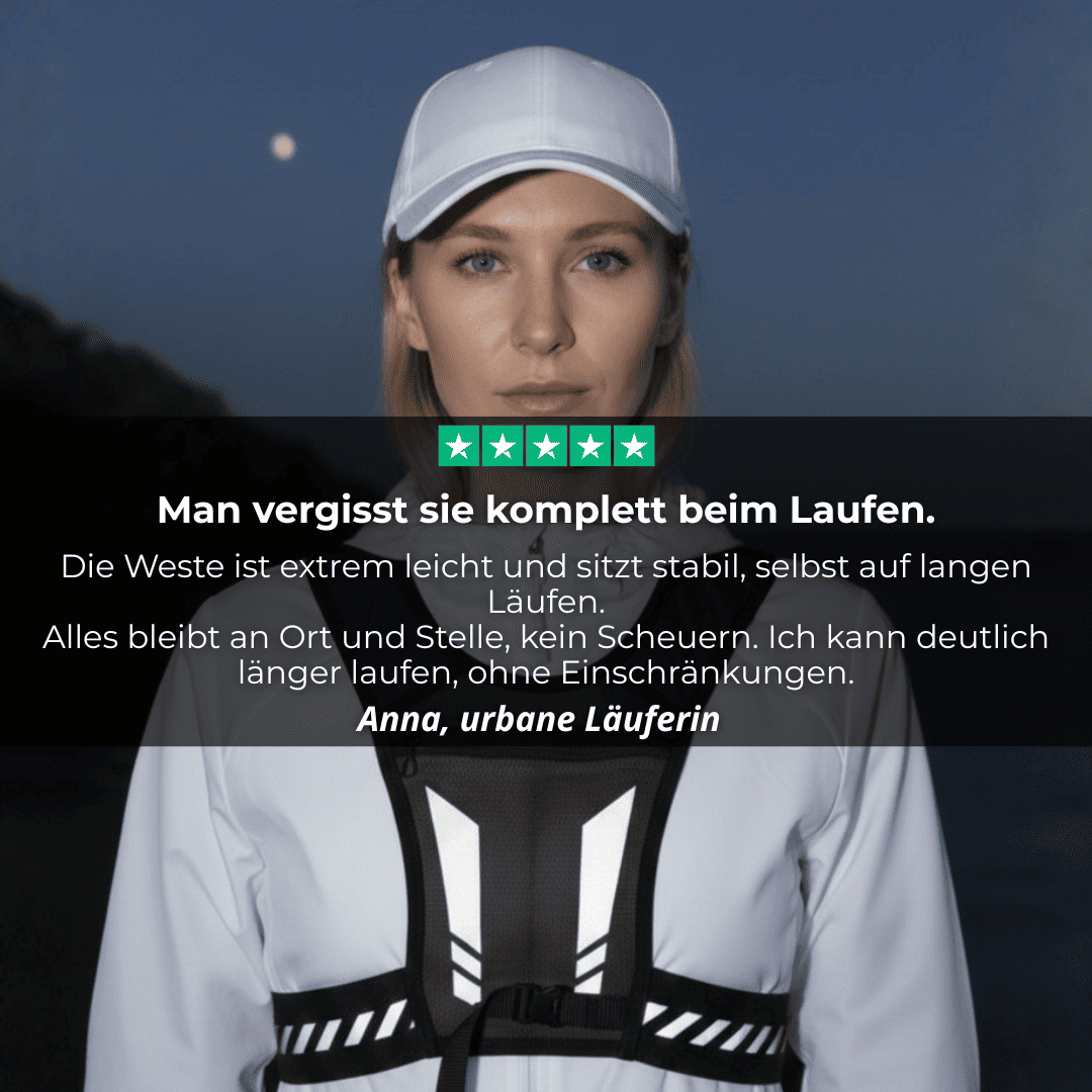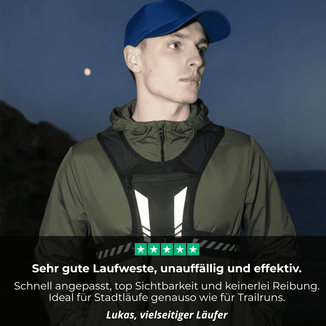 Bereits von leistungsorientierten Sportlern genutzt, wird unsere Laufweste von 95 % unserer Kunden getestet und empfohlen.